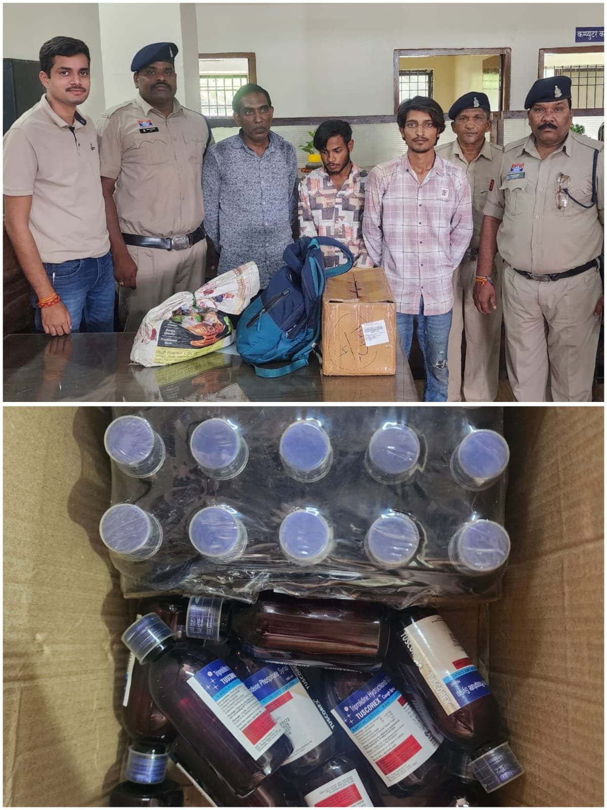 प्रतिबंधित नशीली सिरप बिक्री हेतु रखे 03 आरोपी गिरफ्तार
