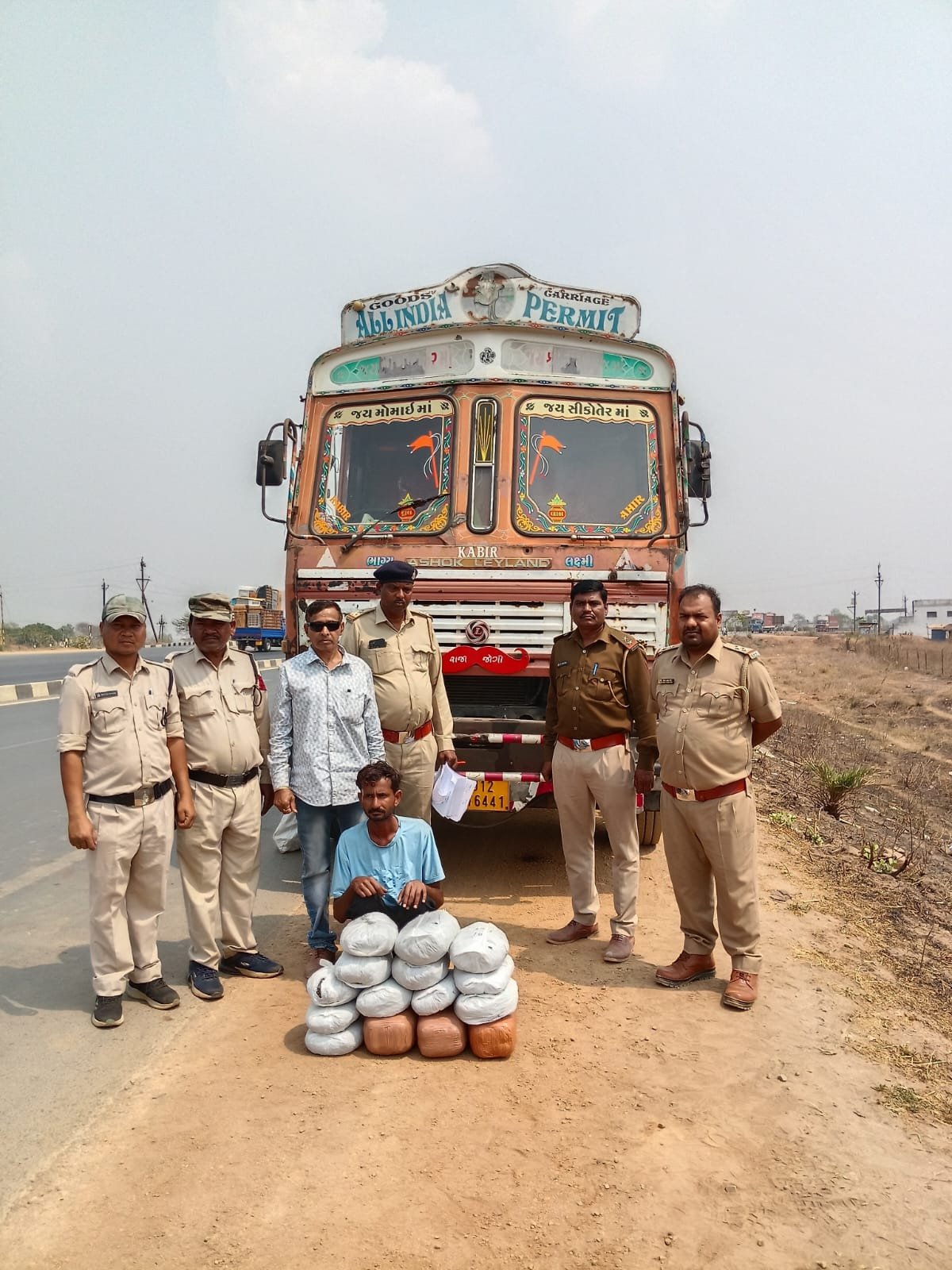 तलाशी के दौरान ट्रक में सवार आरोपी ईरफान गौरी के पास से 18.285 किलोग्राम अवैध गांजा बरामद किया गया। बरामद मादक पदार्थ को जब्त कर आरोपी के विरुद्ध एनडीपीएस एक्ट की धारा 20 (बी) (पप) (सी) के अंतर्गत प्रकरण पंजीबद्ध किया गया। आबकारी विभाग द्वारा आरोपी को रिमांड पर लेकर न्यायिक अभिरक्षा में जेल भेज दिया गया है। जिला आबकारी अधिकारी ने बताया कि जिले में अवैध मादक पदार्थों के विरुद्ध कार्रवाई आगे भी निरंतर जारी रहेगी।