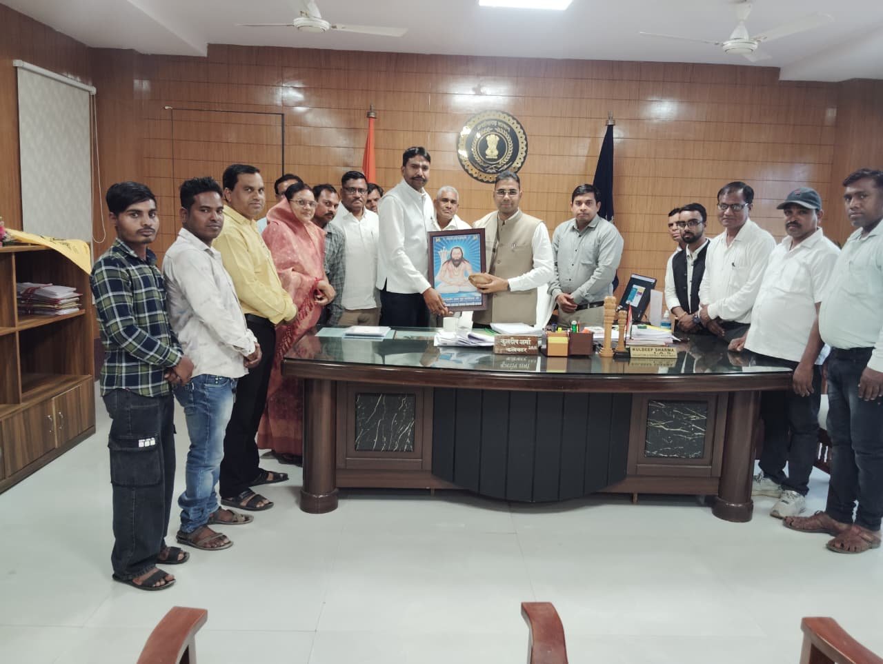 सतनामी समाज के प्रतिनिधि मंडल ने सामाजिक कार्यकर्ता एवं प्रांताध्यक्ष विक्रम राय गुरुजी के नेतृत्व में जिला कलेक्टर कुलदीप शर्मा से सौजन्य मुलाकात की। इस अवसर पर प्रतिनिधि मंडल द्वारा कलेक्टर को बाबा गुरु घासीदास जी का तैल चित्र, साल, श्रीफल एवं बुके भेंट कर सम्मानित किया गया। मुलाकात के दौरान प्रतिनिधि मंडल ने सतनामी समाज की वर्तमान स्थिति, शिक्षा के विस्तार, सामाजिक जागरूकता और नशा मुक्ति जैसे महत्वपूर्ण विषयों पर विस्तृत चर्चा की। समाज में बढ़ती नशा प्रवृत्ति को लेकर चिंता व्यक्त करते हुए समाज को नशा पान से मुक्त करने के लिए जनजागरूकता अभियान चलाने की आवश्यकता पर जोर दिया गया।