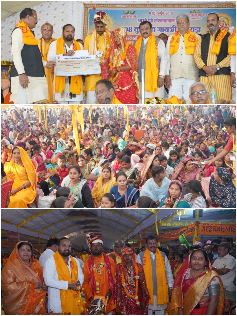 बेमेतरा।बेमेतरा जिले के ग्राम सिलघट भीमभौरी में 10 से 13 सितंबर तक अखिल विश्व गायत्री परिवार, शांति कुंज हरिद्वार के मार्गदर्शन में एवं महिला एवं बाल विकास परियोजना बेमेतरा के संयुक्त तत्वावधान में आयोजित “आओ गढ़ें संस्कारवान पीढ़ी” 108 कुण्डीय गायत्री महायज्ञ एवं संस्कार महोत्सव भव्यता और गरिमा के साथ सम्पन्न हुआ। इस आयोजन के अंतर्गत 1056 गर्भवती माताओं का गर्भोत्सव संस्कार एवं 93 जोड़ों का मुख्यमंत्री कन्या आदर्श विवाह संस्कार सम्पन्न कराया गया, जो सामाजिक समरसता, नारी सम्मान एवं भारतीय संस्कृति का अनुपम उदाहरण है।
