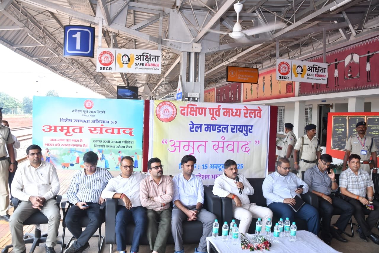 रायपुर – दक्षिण पूर्व मध्य रेलवे, रायपुर रेल मंडल में विशेष अभियान 5.0 के तहत “अमृत संवाद” कार्यक्रम का आयोजन किया जा रहा है । इसी श्रृंखला में आज दिनांक 15 अक्टूबर 2025 को भानुप्रतापपुर, दल्लीराजहरा एवं बालोद रेलवे स्टेशन में मंडल रेल प्रबंधक दयानंद की विशेष उपस्थिति में “अमृत संवाद” कार्यक्रम का सफल आयोजन किया गया ।
