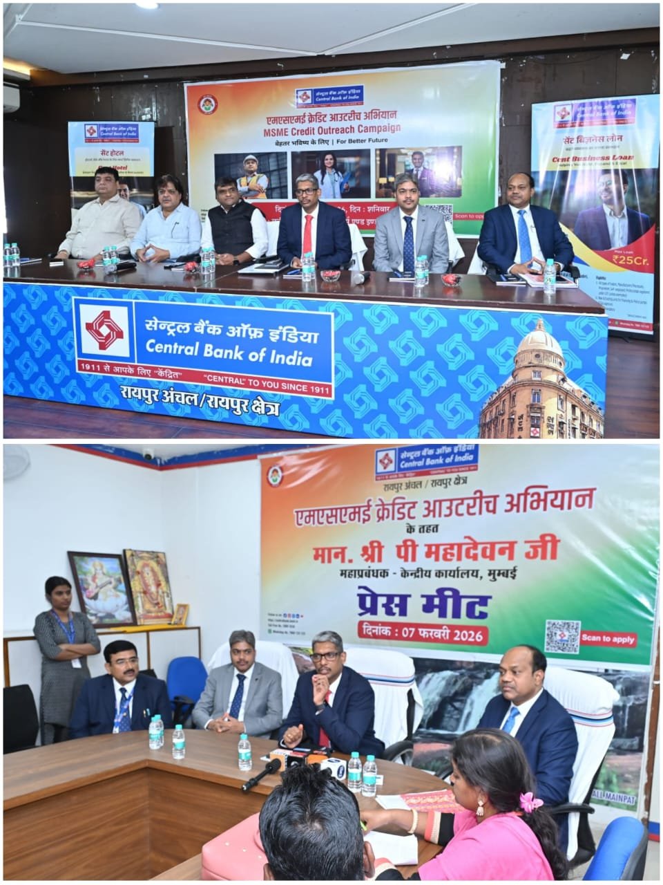 Raipur (_Newsxpress)। सेन्ट्रल बैंक ऑफ इंडिया आज के दिन सारे भारत में एनएसएमई ऋण आउटरीच कार्यकन आयोजित कर रहा है. इसी तारतम्य में बैंक द्वारा आज रायपुर में छ.ग. चैंबर्स ऑफ कामर्स के सभागार में एमएसएमई त्रऋण आउटरीच कार्यक्रम का सफल आयोजन किया गया. इस कार्यक्रम का उद्देश्य उद्यमियों को हमारे बैंक की एमएसएमई ऋण के नये प्रोडक्ट की जानकारी देना तथा उद्यमियों को एमएसएमई त्रऋण वितरित करना है. इस कार्यक्रम में लगभग 60 उद्यमियों ने इस कार्यक्रम में सक्रिय रूप से भाग लिया।