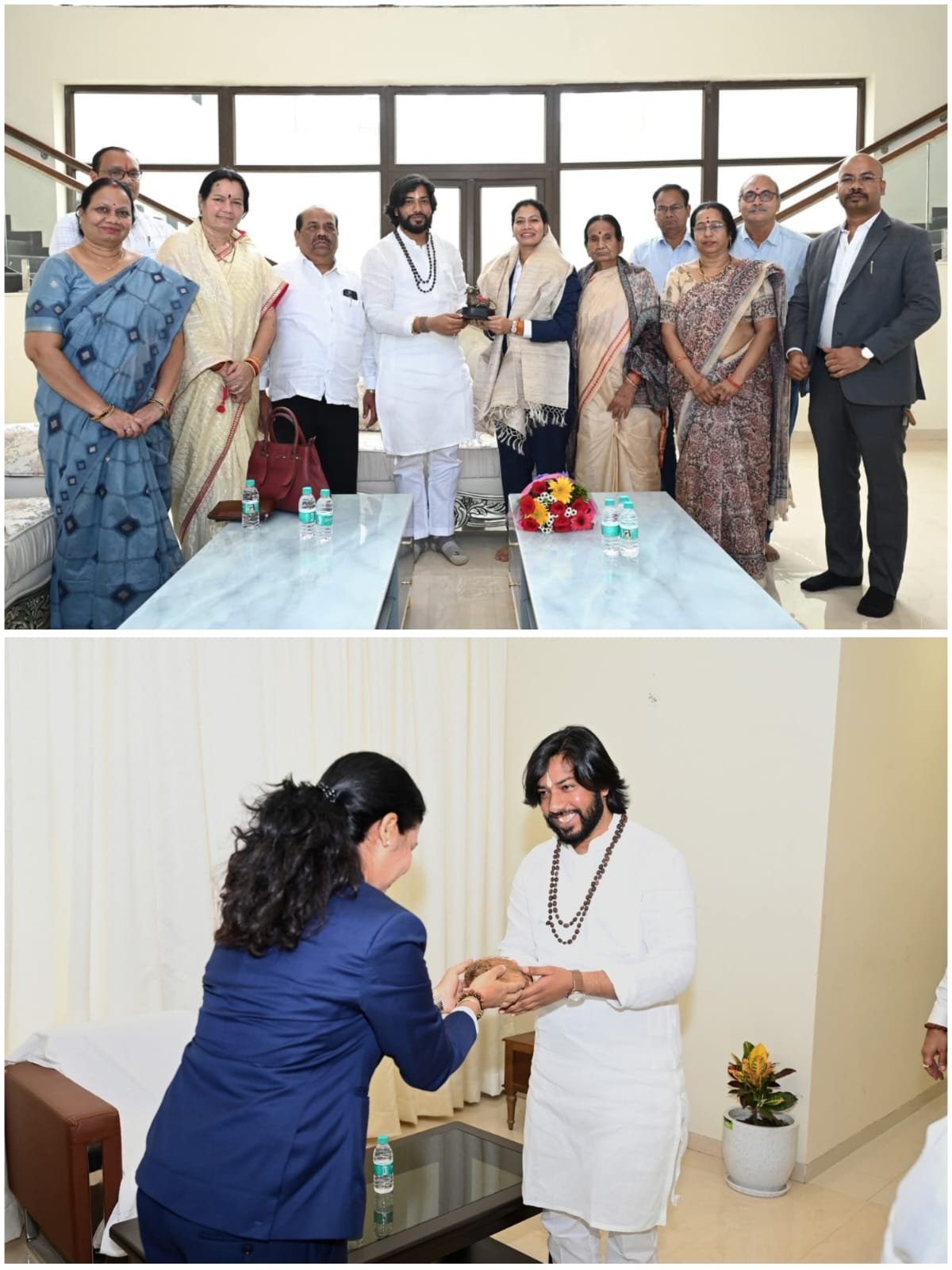 CG NEWS : रायपुर । छत्तीसगढ़ राज्य के कौशल विकास, तकनीकी शिक्षा,रोजगार एवं अनुसूचित जाति विकास मंत्री, आरंग विधायक एवं सतनामी समाज के गुरु माननीय गुरु खुशवंत साहेब जी से आज भारतीय महिला क्रिकेट टीम की फिजियोथैरेपिस्ट एवं स्पोर्ट्स साइंस विशेषज्ञ सुश्री आकांक्षा सत्यवंशी ने उनके नवीन आवास M3, नवा रायपुर में सौजन्य भेंट की। मुलाकात के दौरान आकांक्षा सत्यवंशी जी ने गुरुगद्दी की पूजा-अर्चना कर गुरु खुशवंत साहेब जी को श्रीफल भेंट कर आशीर्वाद प्राप्त किया। गुरु खुशवंत साहेब ने भी गुरु धर्म का निर्वहन करते हुए शुभाशीष प्रदान किया और शाल व स्मृति चिन्ह भेंट कर भारतीय महिला क्रिकेट टीम की ऐतिहासिक विश्वकप जीत में उनके अमूल्य योगदान के लिए हार्दिक बधाई एवं शुभकामनाएं दीं।