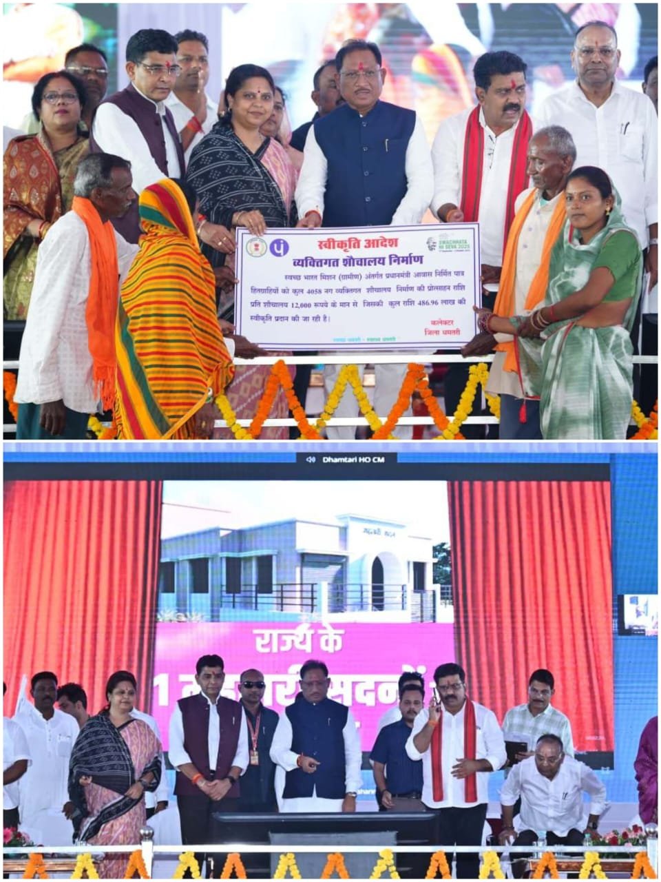 CG NEWS : मुख्यमंत्री विष्णु देव साय धमतरी जिले के कुरूद विधानसभा क्षेत्र के ग्राम करेली बड़ी में आयोजित प्रदेश स्तरीय महतारी सदन लोकार्पण समारोह में शामिल हुए। उन्होंने करेली बड़ी में मंच से राज्य के विभिन्न जिलों में नव निर्मित 51 महतारी सदनों का रिमोट से बटन दबाकर वर्चुअल शुभारंभ किया। इसके साथ ही ग्राम संपदा एप तथा मनरेगा की समग्र जानकारी आधारित नागरिक सूचना पोर्टल का भी शुभारंभ किया। इसके अलावा ’लखपति दीदी/महतारी सदन’ और ’’माँ अभियान’’ पुस्तिका का विमोचन भी किया।