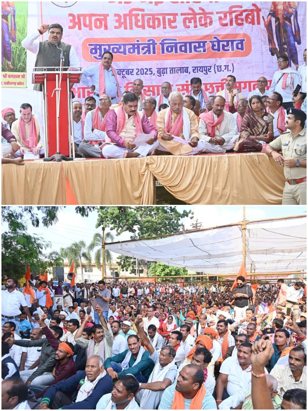 CG NEWS : रायपुर | भारतीय किसान संघ छत्तीसगढ़ प्रदेश के द्वारा बूढ़ा तलाब स्थित धरना स्थल पर आंदोलन किया गया था। जिसे देखते हुए मुख्यमंत्री विष्णुदेव साय के मार्गदर्शन में शिक्षा मंत्री गजेंद्र यादव आंदोलनरत भारतीय किसान संघ के प्रतिनिधि मंडल से मुलाकात की और उनसे उनकी समस्याओं के संबंध में जाना। जहां बिंदुवार सभी नौ सूत्रीय मांगों पर उन्होंने प्रतिनिधियों से सहानुभूतिपूर्वक सभी मांगों के संबंध में चर्चा की। इसके बाद वे बूढ़ा तलाब स्थित धरना स्थल में पहुंचे। जहां बड़ी संख्या में आये किसानों ने मंत्री यादव का अभिवादन किया।