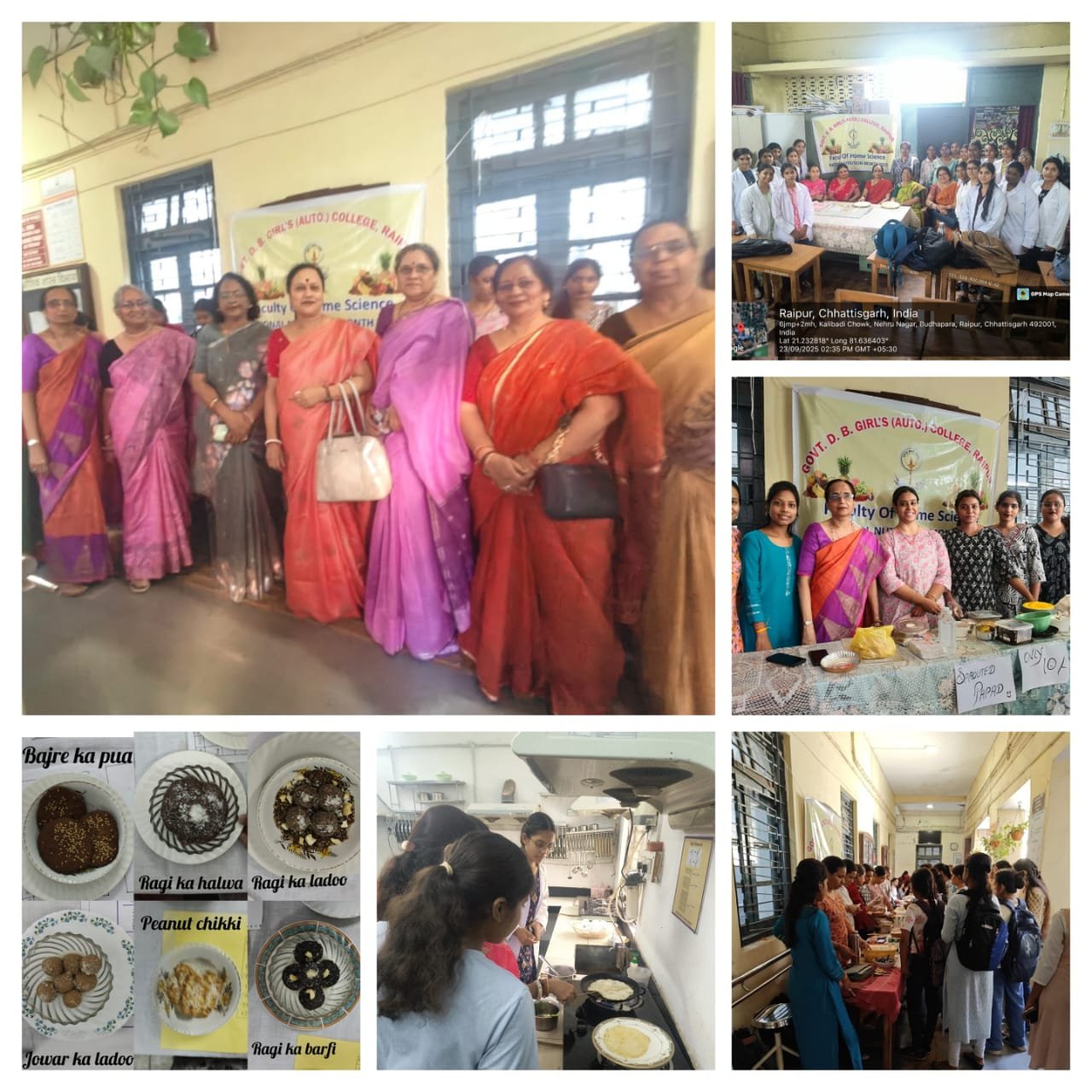 Raipur; शासकीय दूधाधारी बजरंग महिला स्नातकोत्तर महाविद्यालय, रायपुर के गृहविज्ञान विभाग में आदरणीय प्राचार्य डॉ. किरण गजपाल के मार्गदर्शन में पोषण मेले का आयोजन किया गया। मैडम ने अपने उद्बोधन में कहा कि इस तरह के आयोजन समाज में स्वास्थ्य जागरूकता के लिए आवश्यक है। इस वर्ष 15 सितंबर से 15 अक्टूबर के दौरान मनाए जाने वाले पोषण माह की थीम “सही भोजन बेहतर जीवन” था। जिसके अंतर्गत पूरे पखवाड़े विभिन्न कार्यक्रम के अंतर्गत प्रदर्शनी, कार्यशाला एवं पोषण जागरूकता का आयोजन किया गया जिसमें -मिलेट के व्यंजन, छत्तीसगढ़ी पारंपरिक व्यंजन तथा पोषण एवं स्वास्थ्य से संबंधित पोस्टर एवं चार्ट का प्रदर्शन ।