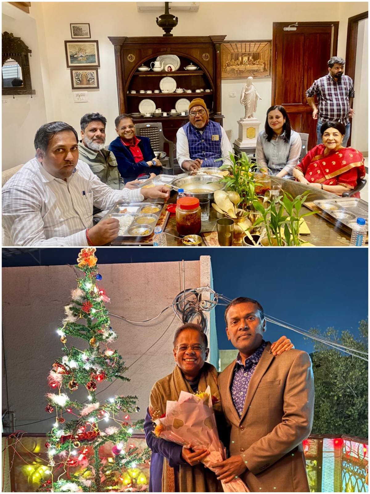 रायपुर, छत्तीसगढ़, दिनांक 25/12/2025। क्रिसमस की बधाई देने के लिए अनेक हस्तियां आज मुख्यमंत्री निवास के सामने जोगी निवास पहुंचे । जोगी परिवार ने बधाई देने पहुंचे लोगों को भोजन पर आमंत्रित किया और सभी मुखिया भोज पर शामिल हुए इसमें प्रमुख रूप से छत्तीसगढ़ पिछड़ा वर्ग संगठन के अध्यक्ष सूरज निर्मलकर, अजय जायसवाल, घनश्याम जायसवाल ,मनोहर तांडी, संतोष गायकवाड, राजू मसीह, गोपाल वर्मा, सुरेश नेताम, महेंद्र वर्मा, बादल निर्मलकर, घनश्याम यादव ,अजय यादव सहित कई अन्य समाज के मुखिया शामिल रहे । इस शादगी भोज में पूर्व विधायक डॉक्टर रेणु जोगी, जेसीसी पार्टी के सुप्रीमो अमित जोगी, जोगी परिवार की बहू ऋचा जोगी, सर्व अनुसूचित जातिसमाज के अध्यक्ष लक्ष्मण भारती , भगवानू नायक, वरिष्ठ कांग्रेस नेता आनंद मिश्रा, रत्नेश मिश्रा, गौरव सिंह, सारिक रईस खान, नवीन अग्रवाल, सत्यम डोंगरे, निलेश चौहान, अंकित मिश्रा, मनसु निहाल, प्रशांत त्रिपाठी, प्रियांशा पॉल आदि अनेक सक्रिय सामाजिक मुखिया शामिल रहे।