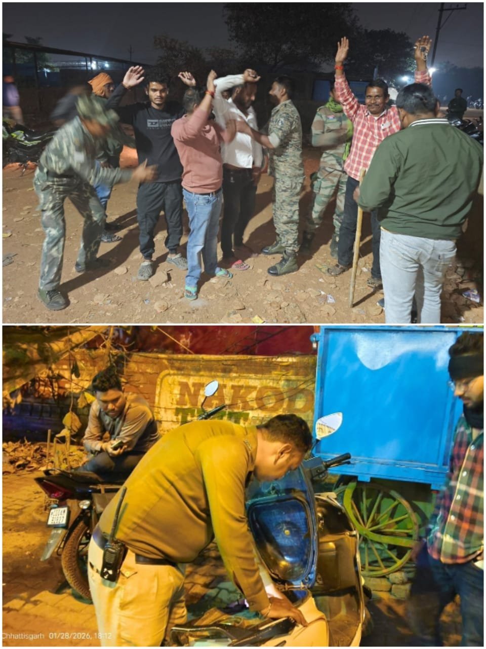 जिसके तारतम्य में आज दिनांक 28.1.2026 को अतिरिक्त पुलिस उपायुक्त आकाश मरकाम, सहा. पुलिस आयुक्त उरला सुश्री पूर्णिमा लामा, सुश्री मानसी नानाभाउ साकोरे (प्रशिक्षु भा.पु.से.) तथा थाना प्रभारियों के नेतृत्व में थाना क्षेत्रों में स्थित शराब भठठी, मुर्रा भठ्ठी, मच्छी तालाब, गोगांव एवं सतनामी पारा में पैदल पेट्रोलिंग करतें हुए संदिग्ध व्यक्तियों, आपरधिक तत्वों की चेकिंग अभियान चलाया गया है।