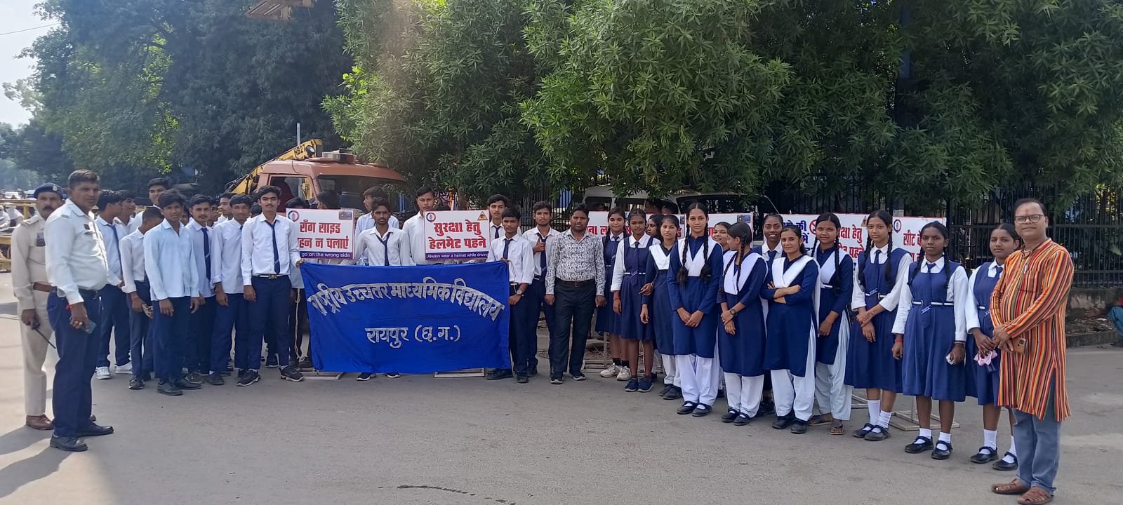यातायात जागरूकता अभियान की कड़ी में कचहरी चौक स्थित राष्ट्रीय उच्चतर माध्यमिक विद्यालय के छात्र-छात्राओं को दिनांक 10.10.2025 को यातायात नियमों की जानकारी दी गयी थी। आज दिनांक 15.10.2025 को शास्त्री चौक में राष्ट्रीय विद्यालय के 60 छात्र-छात्राओं द्वारा अपने खेल शिक्षक व यातायात पुलिस के प्रशिक्षक टीकेलाल भोई एवं आरक्षक सहदेव वर्मा के साथ यातायात नियम लिखे तख्ती लेकर शास्त्री चौक पर वाहन चालकों को यातायात नियमों का पाठ पढ़ाने सड़क पर उतरे। सिगनल में रूकने वाले वाहन चालकों को यातायात नियम दिखाकर पालन करने की समझाईश दी गयी। बच्चों ने दोपहिया चालकों से हेलमेट लगाने व चारपहिया चालकों से सीट बेल्ट लगाने की अपील की। स्टैंड वाली तख्तियों में रांग साइड वाहन न चलाए, दोपहिया चलाते समय हेलमेट धारण करें, नशे की हालत में वाहन न चलाए, सीट बेल्ट अवश्य लगाए, बिना लायसेंस वाहन न चलाये, निर्धारित पार्किंग स्थल में ही वाहन पार्क करें, सिगनल का पालन करें इत्यादि संदेश लिखे हुए थे। छात्र-छात्राओं ने शास्त्री चौक में 02 घंटे तक लोगों को यातायात नियमों का पालन करने की अपील की। इस दौरान यातायात थाना शारदा चौक से सउनि टीकाराम सागर, आरक्षक रामशरण क्षत्रिय एवं अन्य टीम उपस्थित थे।