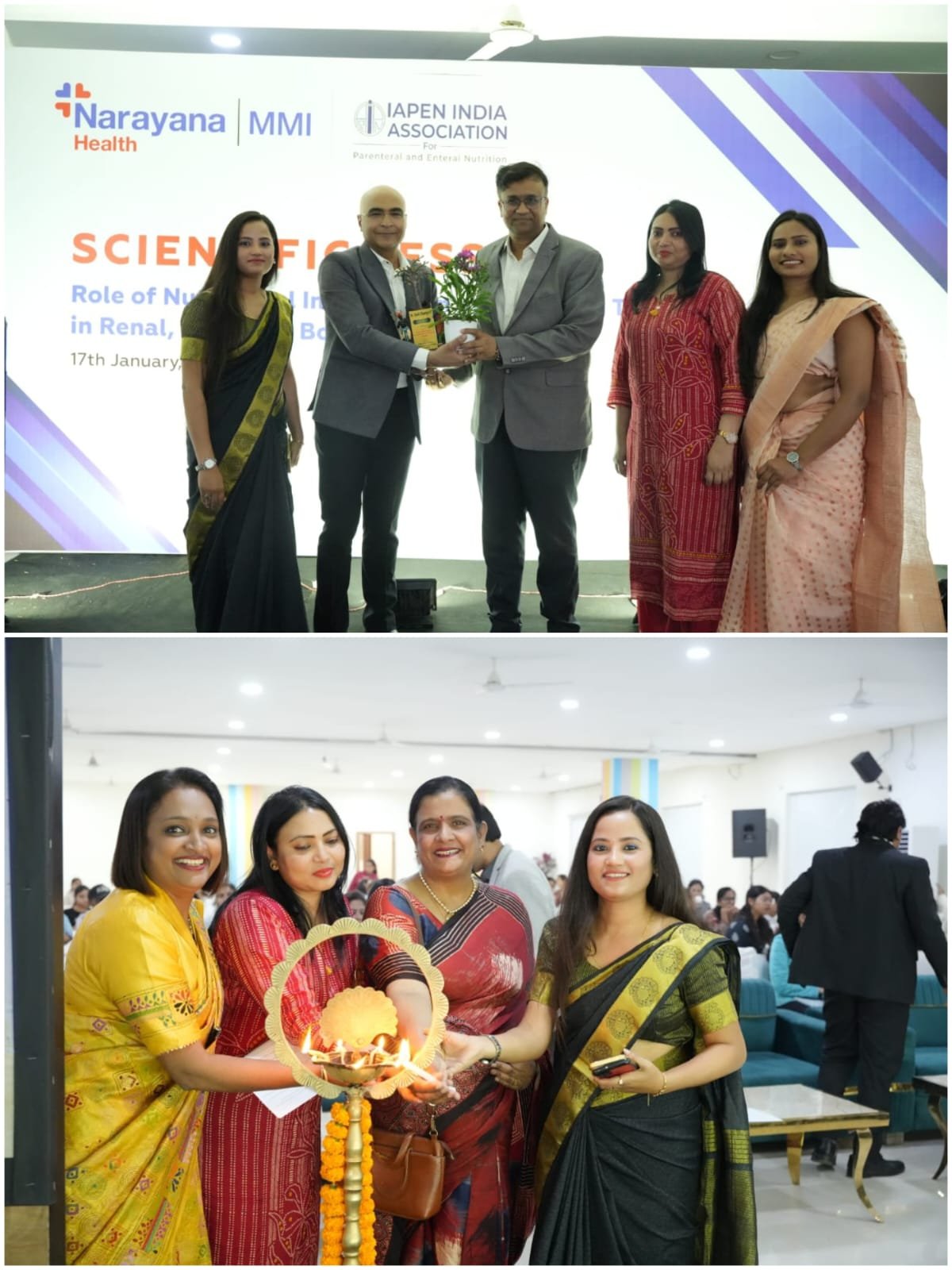 कार्यक्रम का उद्घाटन अजीत कुमार बेल्लमकोंडा (फैसिलिटी डायरेक्टर, एमएमआई नारायणा अस्पताल), डॉ. आर. परगनिहा (सीनियर कंसल्टेंट – जनरल