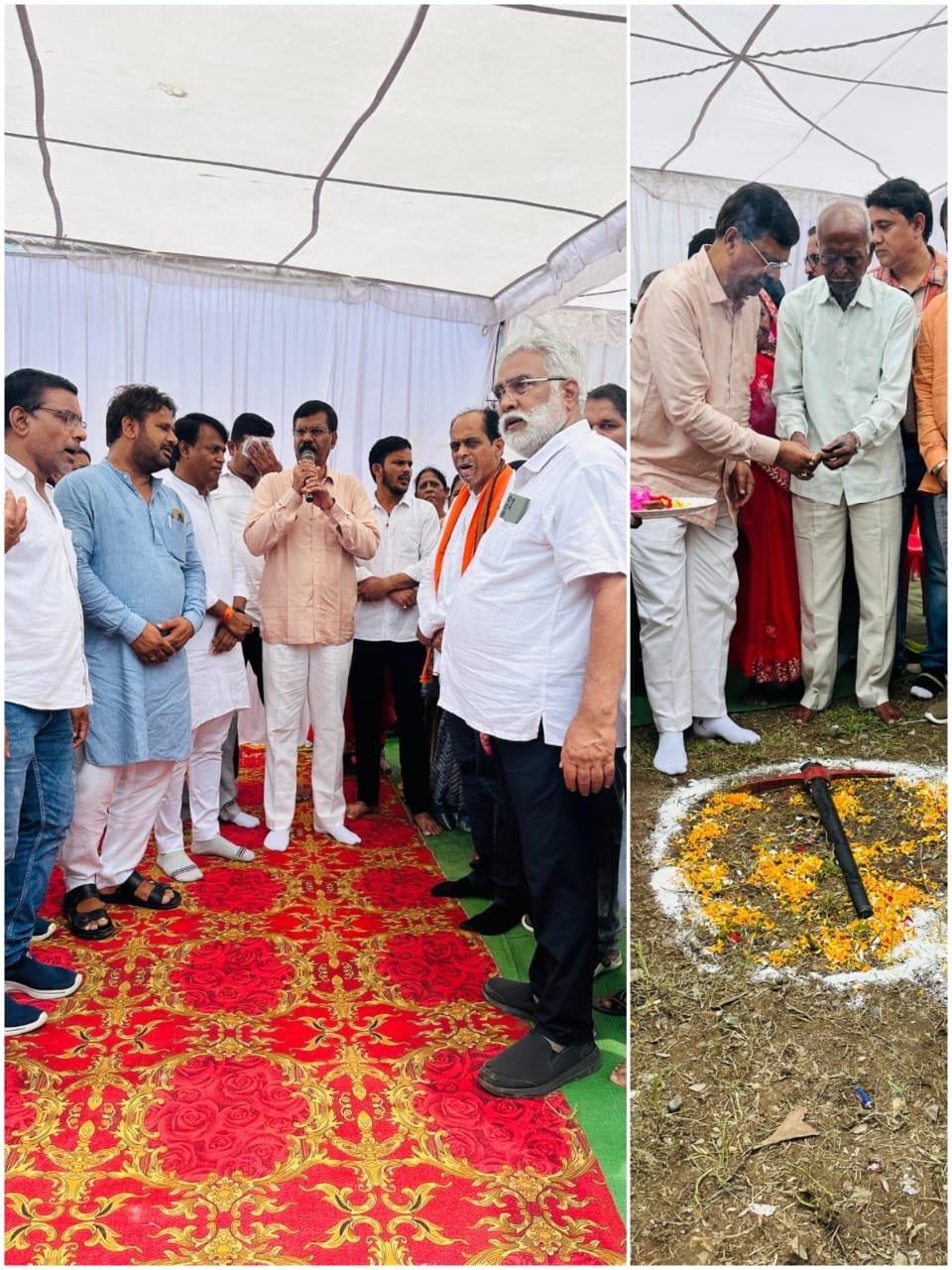 रायपुर ग्रामीण विधायक मोतीलाल साहू ने मोवा बाजार चौक का नामकरण रायपुर निवासी शहीद भरत लाल साहू की स्मृति में शहीद भरत लाल साहू चौक करने के मुख्यमंत्री विष्णुदेव साय के नेतृत्व में लिए गए सभी मंत्रियों के निर्णय के शीघ्र कियान्वयन हेतु श्रीफल फोडकर और कुदाल चलाकर नगर निगम जोन 9 जोन अध्यक्ष गोपेश साहू, एमआईसी सदस्य खेम कुमार सेन, पार्षद देवदत्त द्विवेदी, गणमान्य जनो, सामाजिक कार्यकर्ताओं, विशिष्टजनों, महिलाओं, नवयुवको, आम जनों सहित 27 लाख रू. की स्वीकृति लागत से मोवा बाजार चौक का सौंदर्याकरण करने भूमिपूजन कर कार्यारंभ करवाया। रायपुर ग्रामीण विधायक ने नगर निगम जोन 9 जोन कमिश्नर संतोष पाण्डेय को तत्काल स्वीकृति अनुसार मोवा बाजार चौक का सौंदर्गीकरण शीघ्र शहीद भरत लाल साहू चौक नामकरण किये जाने प्राथमिकता से गुणवत्ता सहित सतत मॉनिटरिंग कर पूर्ण करवाने के निर्देश दिये।