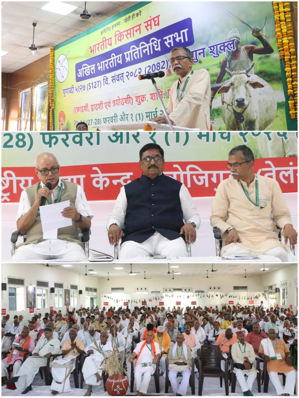 तेलंगाना 1 मार्च भारतीय किसान संघ की तीन दिवसीय अखिल भारतीय प्रतिनिधि सभा भाग्यनगर तेलंगाना में संपन्न हुई। जिसमें देश भर से 37 प्रांतों से किसान संघ के प्रांत स्तर के पदाधिकारी शामिल हुये। प्रतिनिधि सभा में पारित प्रस्ताव के संबंध में जानकारी देते हुये अखिल भारतीय महामंत्री मोहिनी मोहन मिश्र ने बताया कि गौ आधारित जैविक कृषि व गौ कृषि वाणिज्यम् को बढावा देने तथा देशी नस्ल के गौवंश विकास के लिये भारतीय किसान संघ की प्रतिनिधि सभा में प्रस्ताव पास किया गया है जिसमें गौवंश के लिंग नियंत्रण पद्वति को रोकने तथा देशी नस्ल के गौवंश के विकास की बात कही गई है। मिश्र ने बताया कि भारतीय गौवंश नस्लें जलवायु अनुकूलता, सर्वाधिक दूध पौष्टिकता, रोग प्रतिरोधकता क्षमता, गोबर व गौ मूत्र में मौजूद लाभदायक जीवाणुओं की दृष्टि से भू सुपोषण के लिये अत्यंत महत्वपूर्ण है। इसलिये किसान संघ की मांग है कि देश भर में गौवंश संपदा को लुप्त करने वाली सैक्स सार्टेड सीमेन तकनीकि (लिंगानुसार वगीकृत वीर्य तकनीकद) का उपयोग बंद किया जाये। निराश्रित बछड़ों की समस्या का समाधान प्रबंधन से संभव है न कि गौवंश को लुप्त करके। कदापि देशी गौवंश नस्ल के लुप्त होने पर गौवंश विविधता को पुनः वापिस लाना संभव नहीं होगा। श्री मिश्र ने आगे बताया कि गौ कृषि वाणिज्यम् को केंद्रित रख अखिल भारतीय प्रतिनिधि सभा में कार्यक्रम की रचना तैयार की गई। कार्यक्रम में राष्ट्रीय स्वयंसेवक संघ के अखिल भारतीय संपर्क प्रमुख रामलाल जी, प्रांत प्रचारक श्रीधर जी, अखिल भारतीय सह संगठन मंत्री गजेंद्र सिंह सहित अखिल भारतीय कार्यकारिणी के सभी पदाधिकारी उपस्थित रहे।