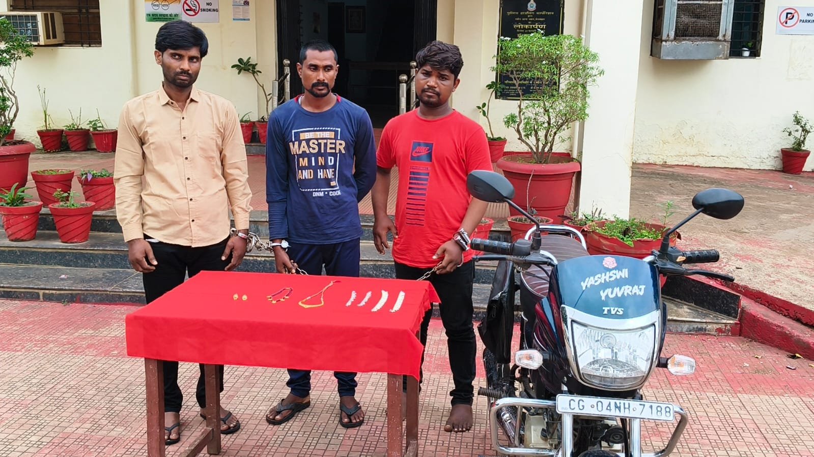 तीनों आरोपियों को गिरफ्तार कर उनकी निशानदेही पर कब्जे से चोरी की सोने एवं चांदी के जेवरात तथा घटना में प्रयुक्त मोटर सायकल जुमला कीमती लगभग 4,50,000/- रूपये जप्त कर आरोपियों के विरूद्ध कार्यवाही किया गया।
