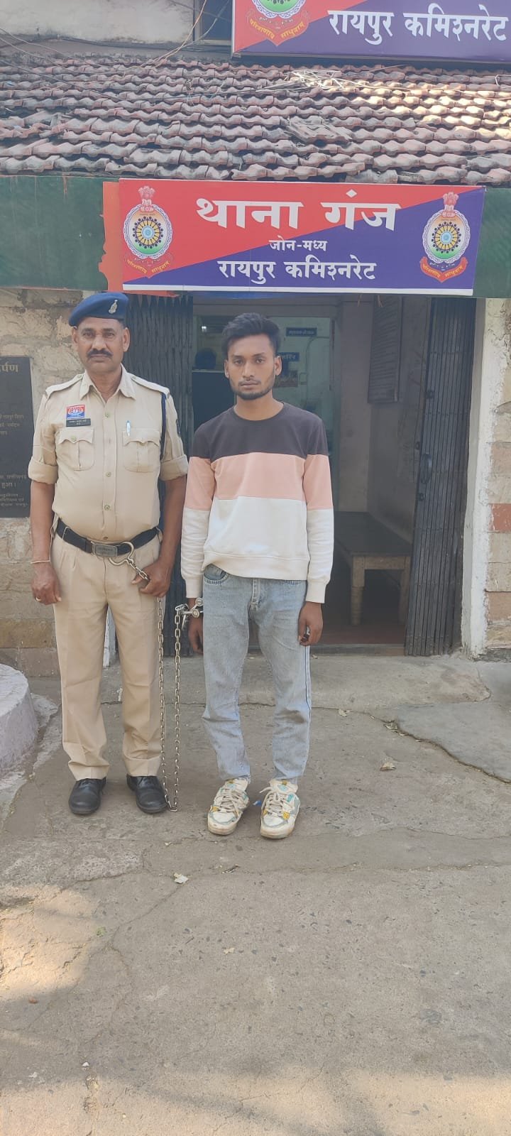 गिरफ्तार आरोपी – विनय देवदास पिता रोशन देवदास उम्र 22 वर्ष निवासी शिव नगर मठपुुरैना शिव मंदिर के पीछे थाना टिकरापारा जिला रायुपर।