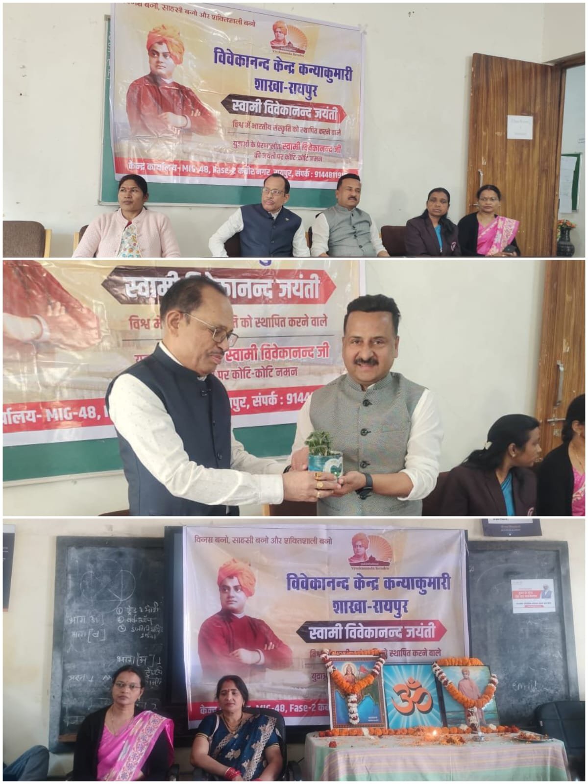 CG NEWS | स्वामी विवेकानंद जयंती जिसे हम युवा दिवस के रूप में मनाते हैं,के अवसर पर विवेकानन्द केंद्र कन्याकुमारी शाखा-रायपुर के द्वारा तीन विभिन्न स्थानों बूढ़ा तालाब रायपुर, रामकृष्ण इंस्टीट्यूट महादेव घाट रायपुरा, गवर्मेंट आईटीआई माना रायपुर में विवेकानंद जी की प्रतिमा में माल्यार्पण एवं दीप प्रज्वलित कर एक्य मंत्र का स्त्रोत किया गया, वहीं माना आईटीआई रायपुर में 150 छात्रों की उपस्थिति में श्री पूर्णानंद साहू एवं शाखा कार्यकर्ता ऋतु मणिदत्ता ,बसंत साहू ,नंदा साहू एवं आशीष दुबे जी के द्वारा स्वामी विवेकानंद के जीवन, विचारों एवं उनके ओजस्वी सिद्धांतों पर प्रकाश डाला गया। वक्ताओं ने स्वामी जी द्वारा युवाओं को दिए गए आत्मविश्वास, अनुशासन और कर्मयोग के संदेश को साझा करते हुए उन्हें राष्ट्र सेवा के लिए प्रेरित किया। स्वामी विवेकानंद के विचारों के माध्यम से युवाओं में सकारात्मक सोच एवं जागरूकता का संचार किया गया। रामकृष्ण इंस्टीट्यूट रायपुरा में 200 छात्रों की उपस्थिति में डायरेक्टर – राजेंद्र चौबे, प्रिंसिपल – सुश्री सुरमणि के द्वारा विवेकानंद के विचारों को साझा किया तथा चेतन तारवानी के द्वारा युवाओं को स्वामी के आदर्श वाक्य “उठो, जागो और तब तक नहीं रुको जब तक लक्ष्य की प्राप्ति न हो जाए” के अर्थ को समझाते हुए स्वयं मध्यम वर्गीय परिवार से होते हुए बर्प ठेले में ग्लास धोने से लेकर चार्टर्ड एकाउंटेंड बनने तक का सफर स्वामी के आदर्शों पर चल कर कैसे तय किया गया इसे समझाया गया। विवेकानंद केंद्र कन्याकुमारी एक आध्यात्म-प्रेरित राष्ट्रसेवी संगठन है, जिसकी स्थापना वर्ष 1972 में श्री एकनाथ रानाडे जी द्वारा कन्याकुमारी में की गई थी। यह संस्था स्वामी विवेकानंद के विचारों और संदेशों को जन-जन तक पहुँचाने के उद्देश्य से कार्य कर रही है। केंद्र द्वारा देश के विभिन्न भागों में युवाओं के चरित्र निर्माण, सांस्कृतिक पुनर्जागरण, शिक्षा, योग, स्वास्थ्य, ग्राम विकास एवं सामाजिक सेवा से जुड़े अनेक कार्यक्रम संचालित किए जाते हैं। राष्ट्र निर्माण में दिए गए इसके उल्लेखनीय योगदान के लिए भारत सरकार द्वारा इसे वर्ष 2015 में गांधी शांति पुरस्कार से सम्मानित किया गया।